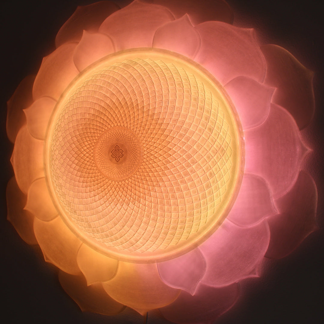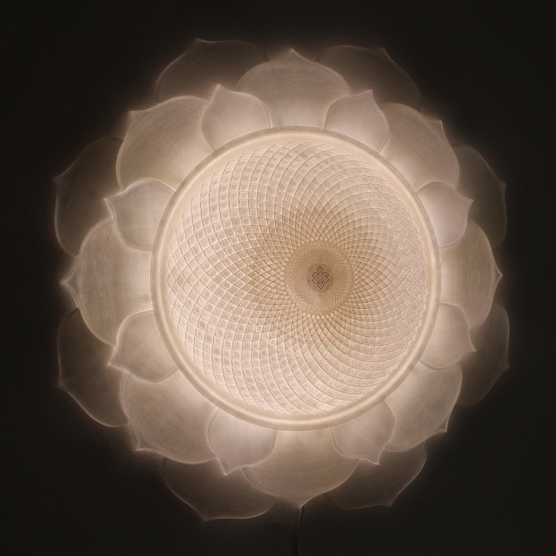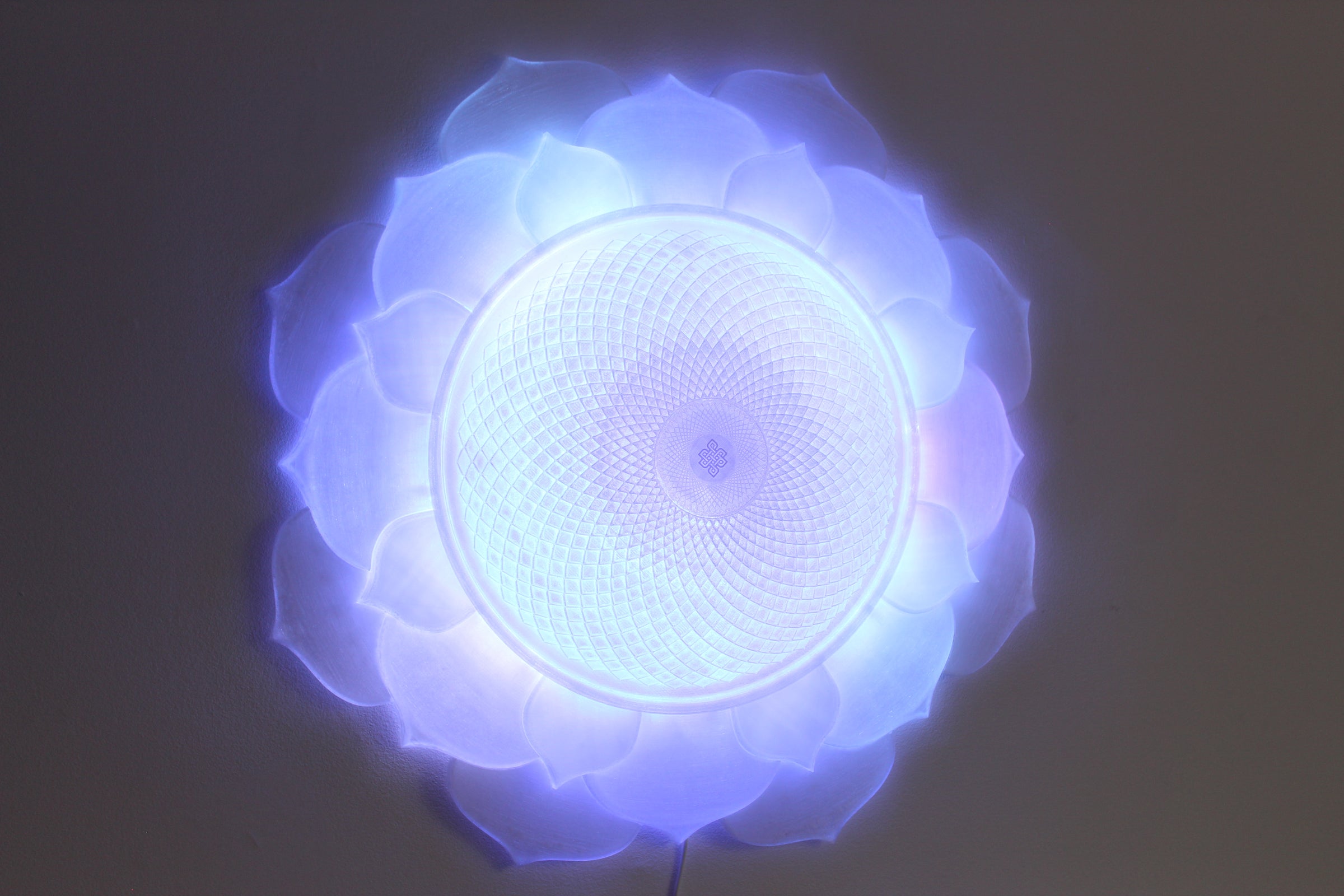 1000 Petal Aura light sculpture is a premium artwork featuring the same design as Radiant Presence but in even larger 34 inch diameter. It is also features double the length of the light source compared to Radiant Presence. This means it is 2 times brighter than Radiant Presence and 4 times brighter than Presence versions of 1000 Petal light.